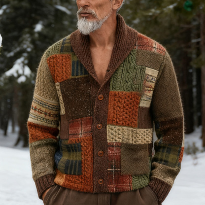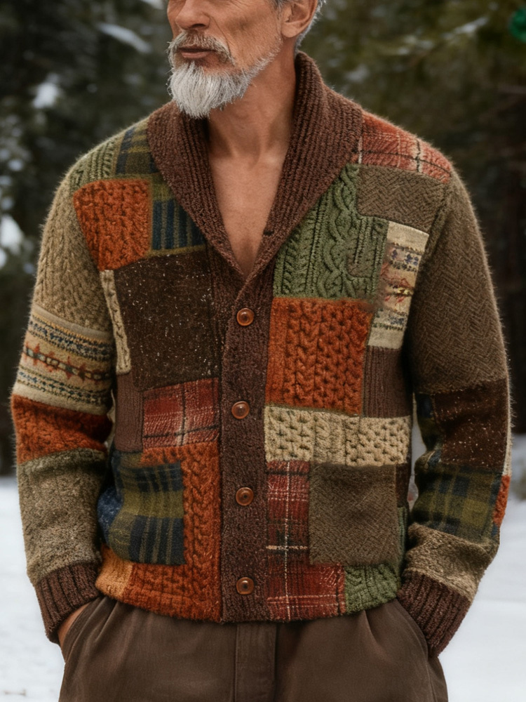 Men's Winter Retro Patchwork Printed Knitted Cardigan