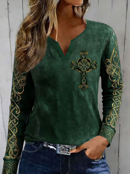 Women's Casual Retro St.patrick's Cross Base Layer Top