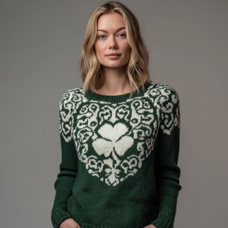 Women's St. Patrick's Day And Shamrock Pattern Comfortable Knit Sweater