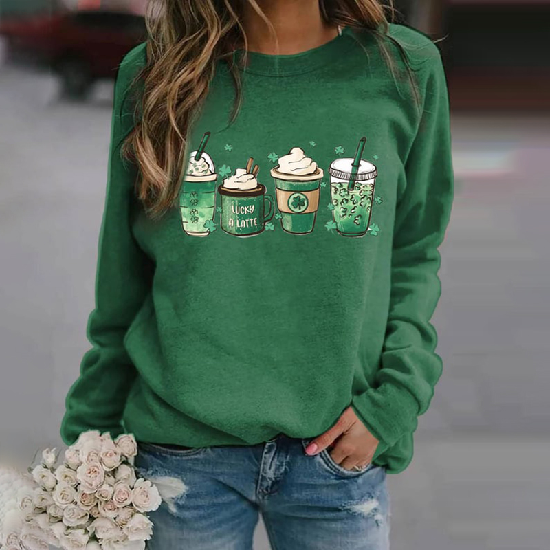 Women's St Patrick'S Day Clover Print Long Sleeve Sweatshirt