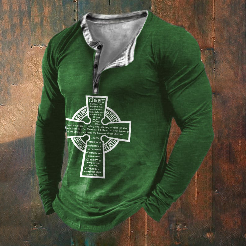 Men's Casual St Patrick'S Day Print Button Long Sleeve Top