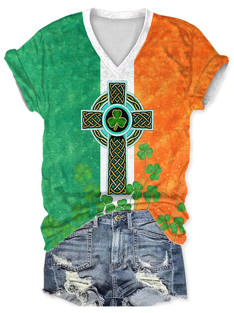 Women's St. Patrick's Lucky V-Neck Casual T-Shirt