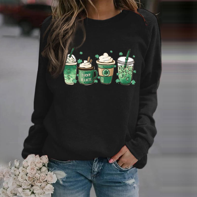 St. Patrick's Coffee Shamrock Print Sweatshirt