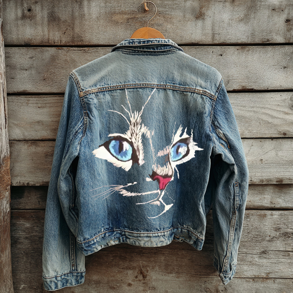 Blue-eyed Cat Embroidery Vintage Denim Jacket