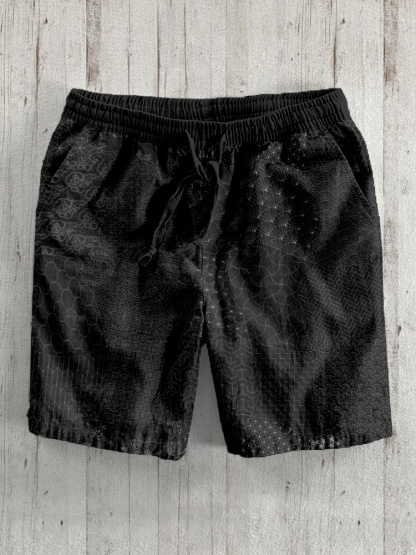 Japanese Traditional Sashiko Art Linen Blend Shorts