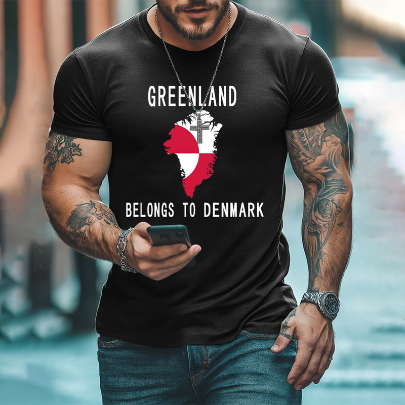 Men's Retro Greenland Belongs To Denmark Printed Casual Crew Neck T-shirt
