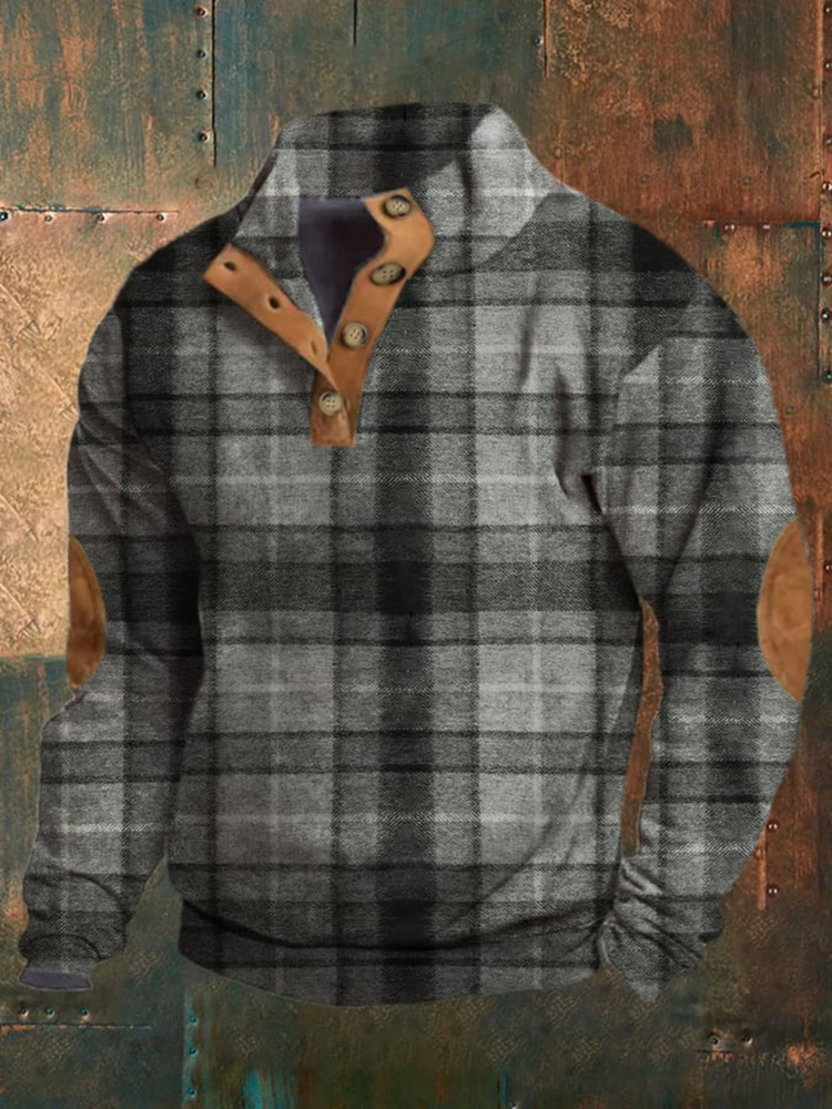 Men's Retro Western Check Print Sweatshirt