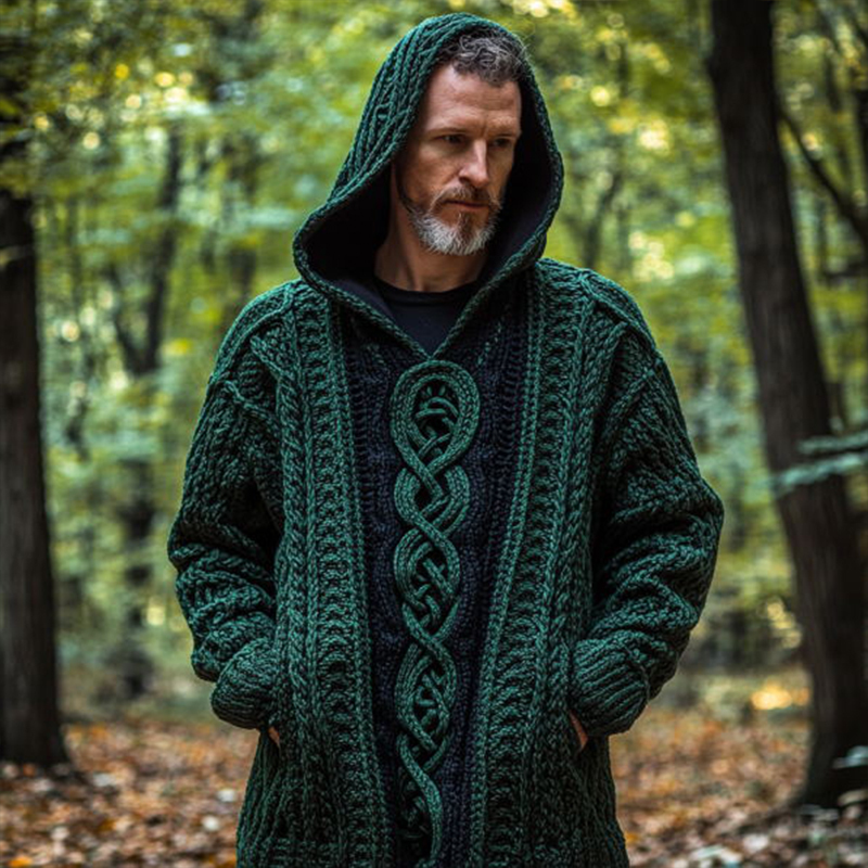 Men's Vintage Celtic Knot Chunky Knit Hooded Sweater