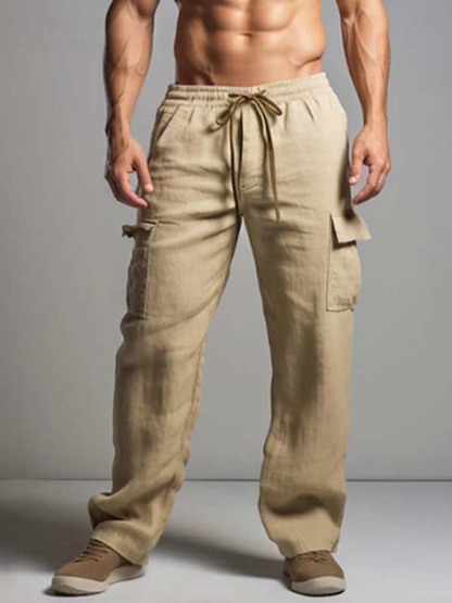 Men'S Vintage Drawstring Casual Cotton Linen Pants
