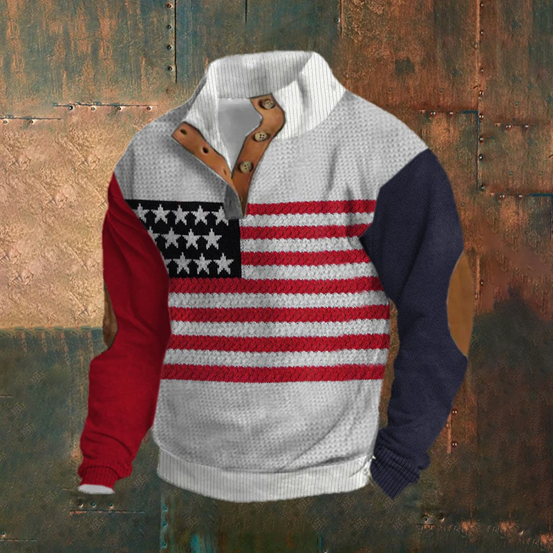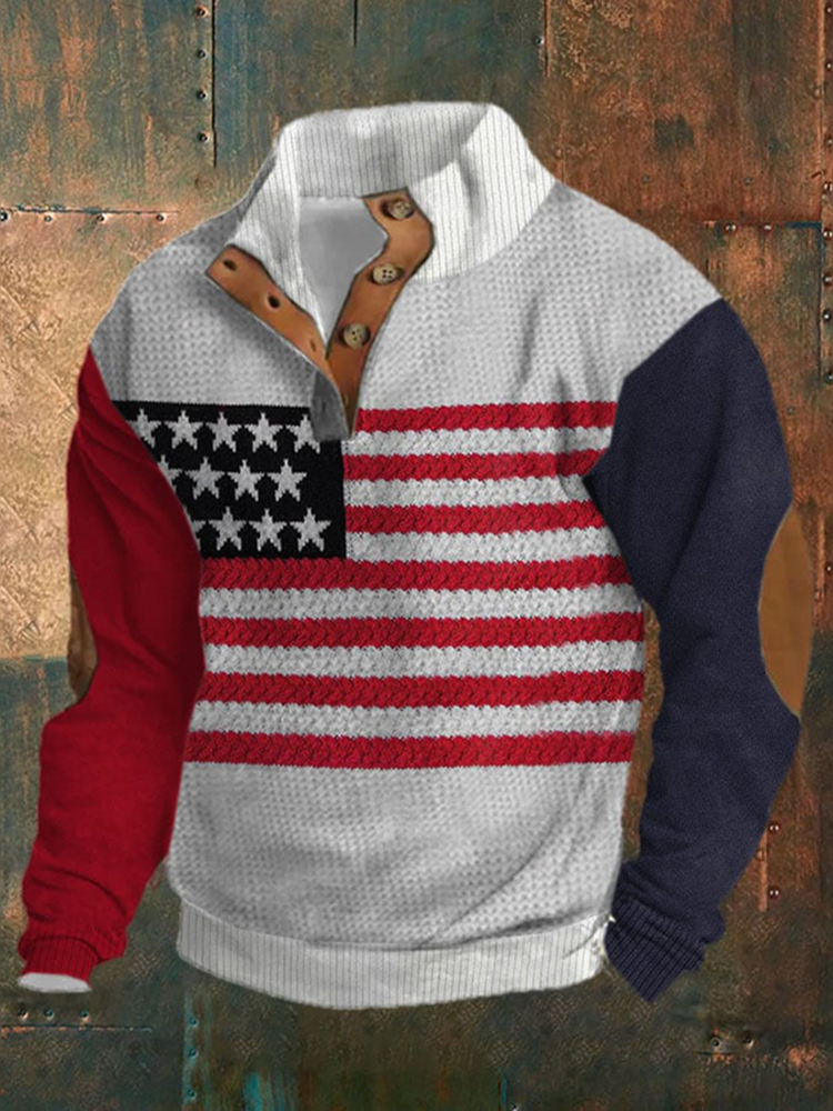 Men's Vintage Flag Print Casual Buttoned Sweatshirt