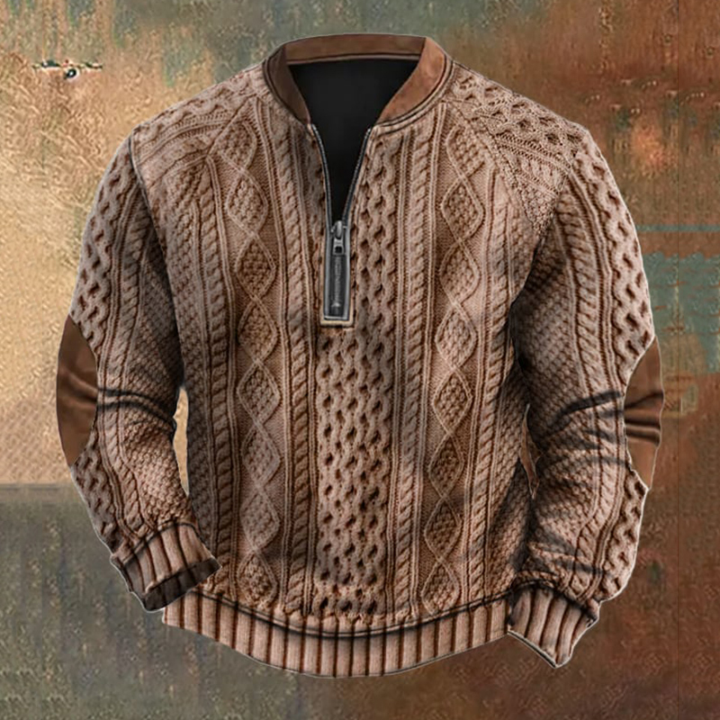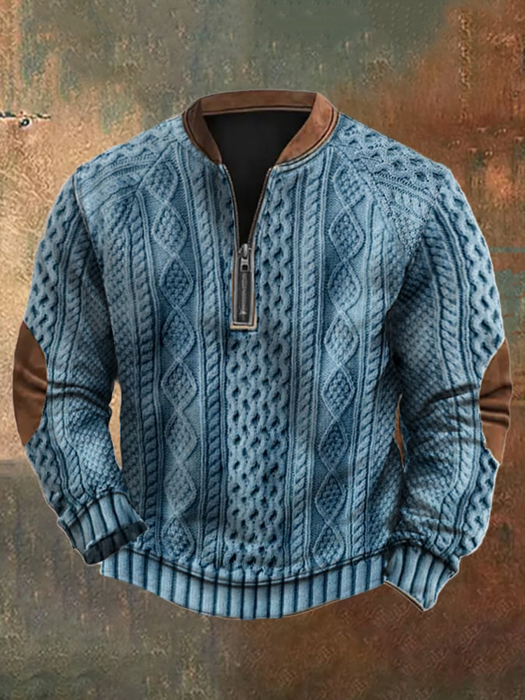 Men's Vintage Knit Print Zip-Up Sweatshirt