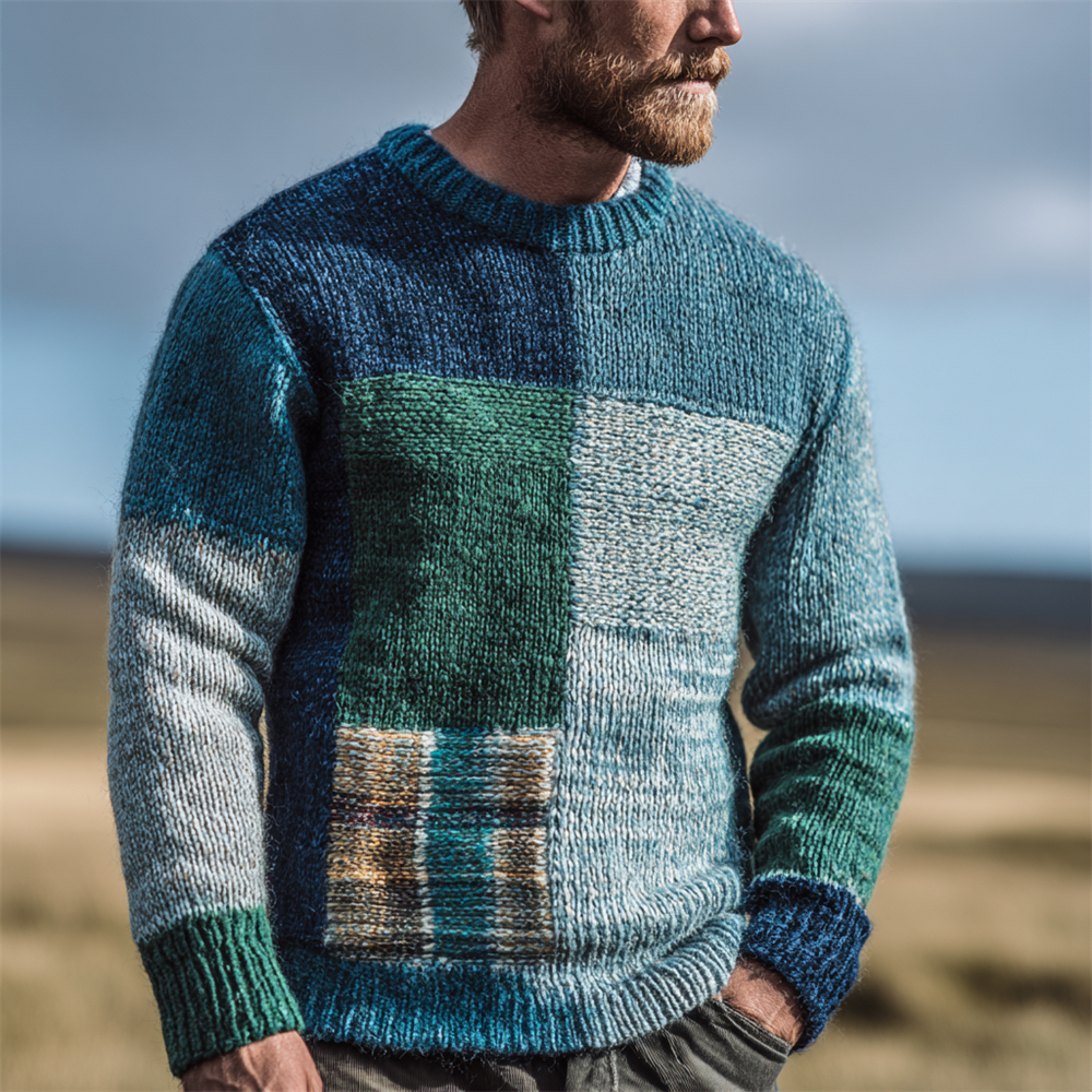 Vintage Plaid Patchwork British-style Men's Knit Sweater
