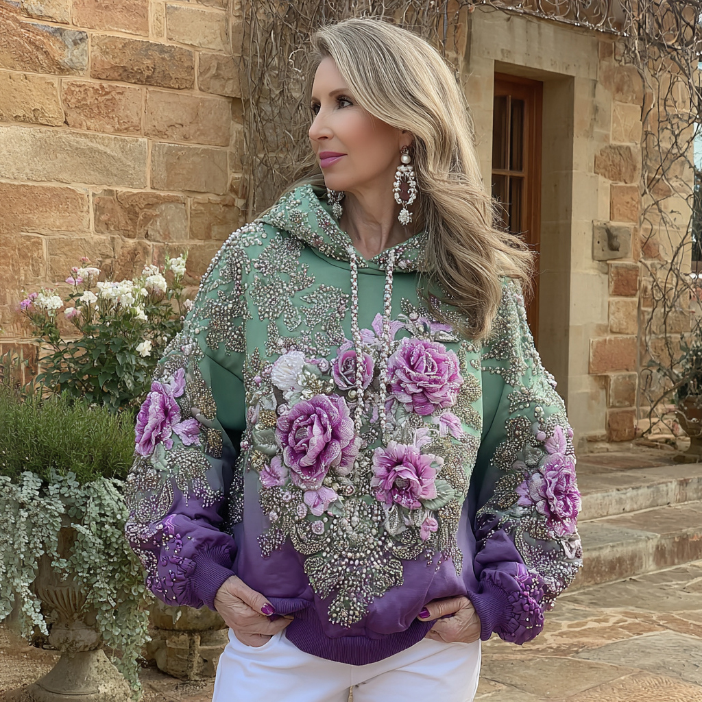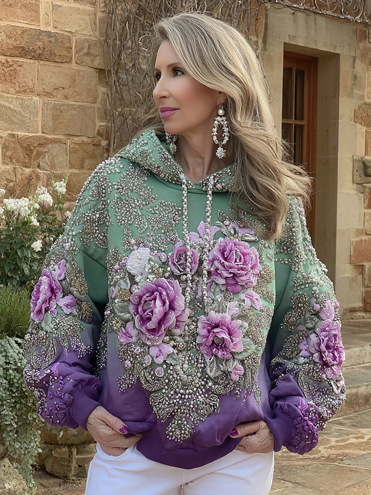 Women's Retro Purple Rose Gradient Art Pattern Casual Hoodie