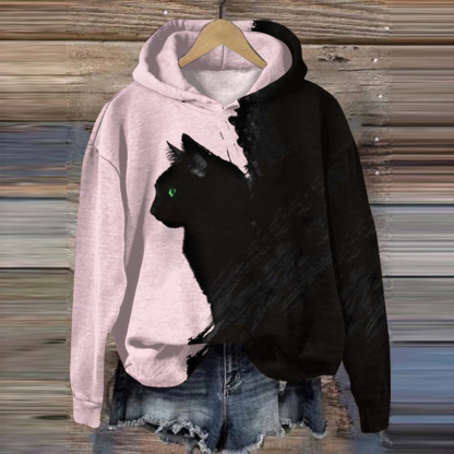 Abstract Black Cat Art Print Casual Hoodie