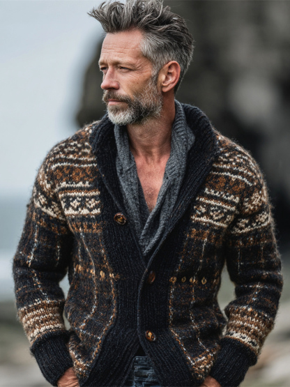British Vintage Plaid Men's Knit Cardigan