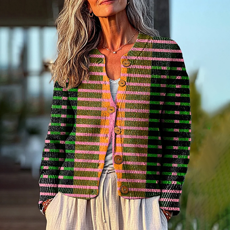 Classic Geometric Stripe Painting Art Print Buttoned Cardigan Sweater