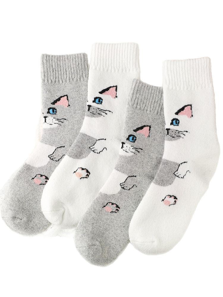 Cute Cat Pattern Cozy Knit Mid-calf Socks