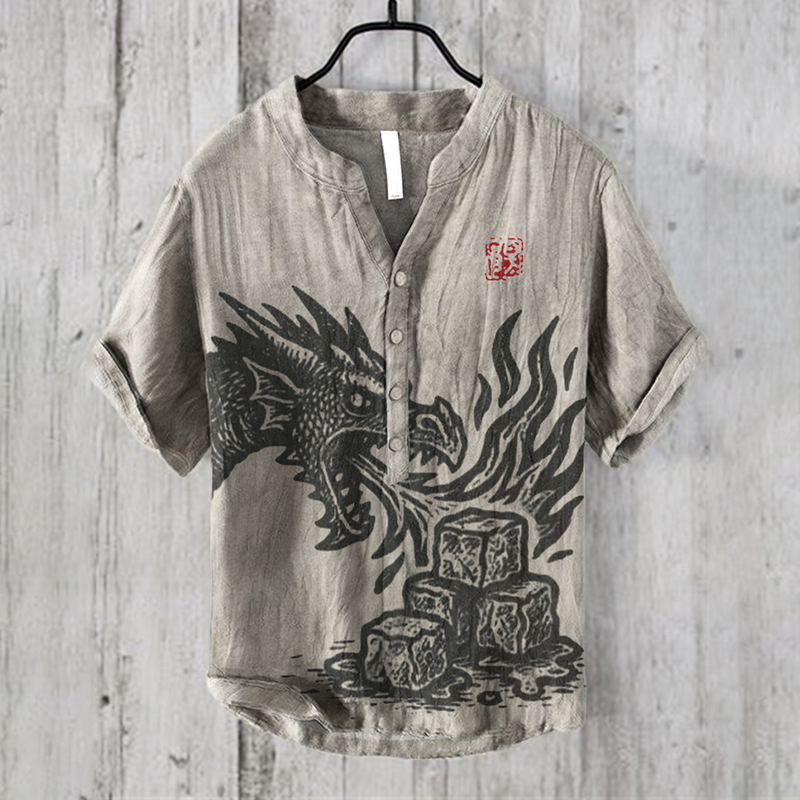 Ice Melts Under Resistance Anti Ice Dragon Graphics Printed Men's Short-sleeve Shirt