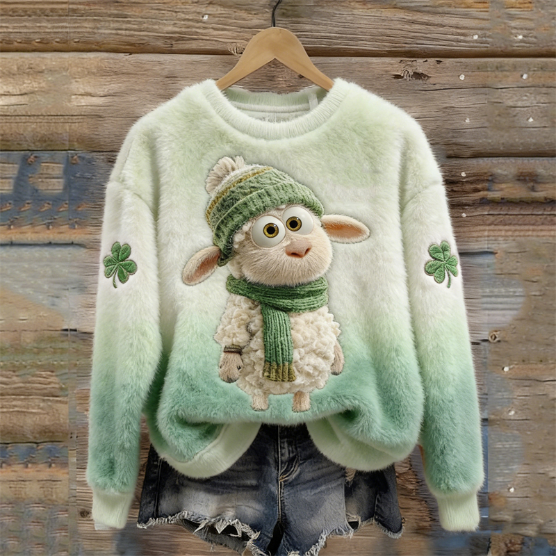 Lovely Sheep Shamrocks Gradient Cozy Plush Sweatshirt