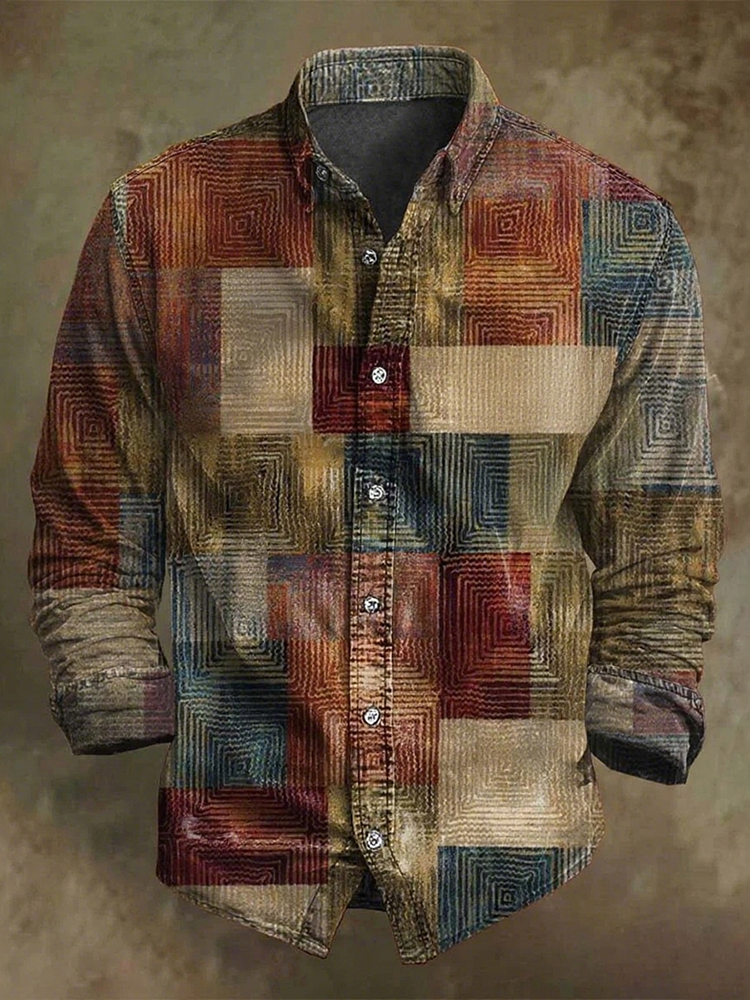 Men's Color Block Spiral Geometric Art Print Long Sleeve Shirt
