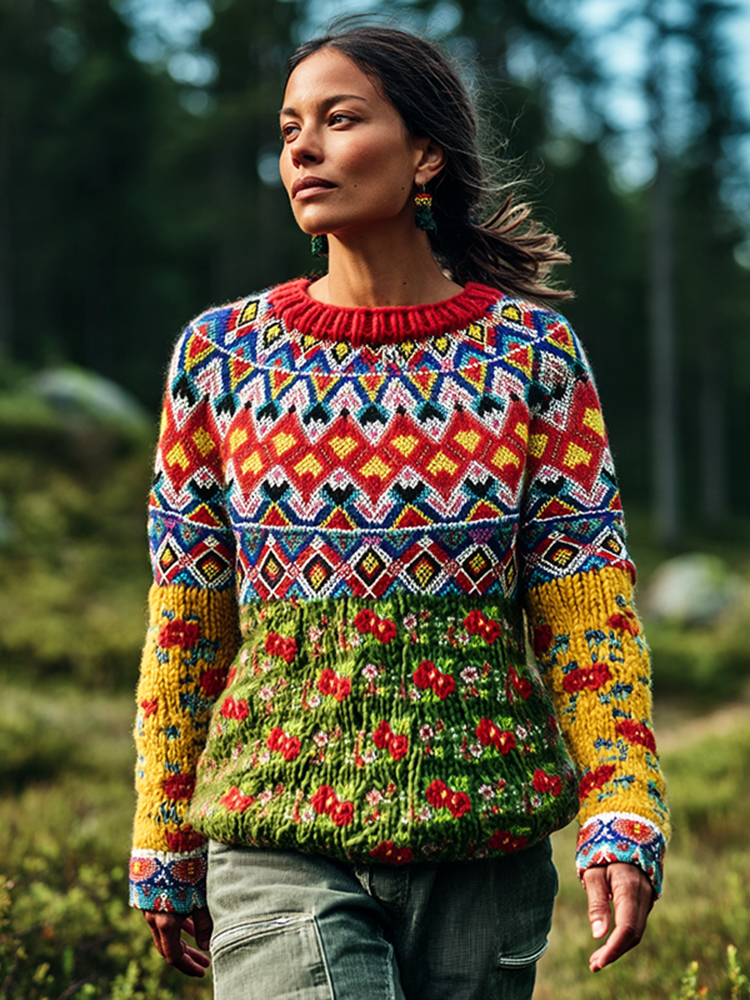 Men's Greenland Kalaallit Beaded Flowers Design Sweater