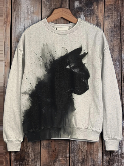 Men's Ink Drawing Black Cat Print Casual Sweatshirt
