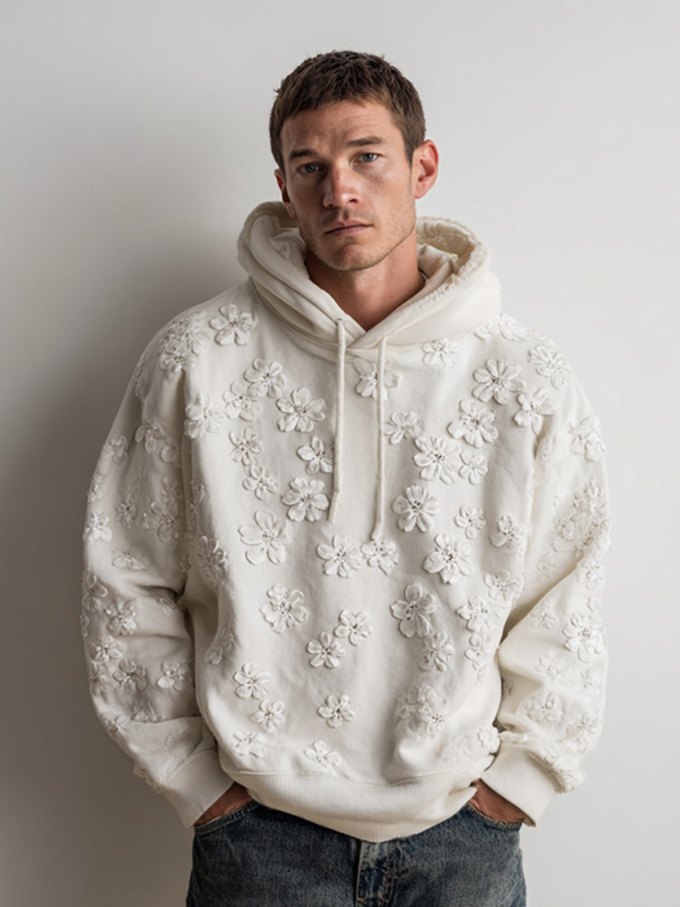 Men's Japanese White Almond Blossom Art Hooded Sweatshirt