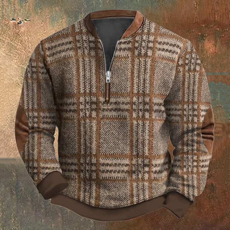 Men's Knit Texture Print Casual Zipper V Neck Sweatshirt