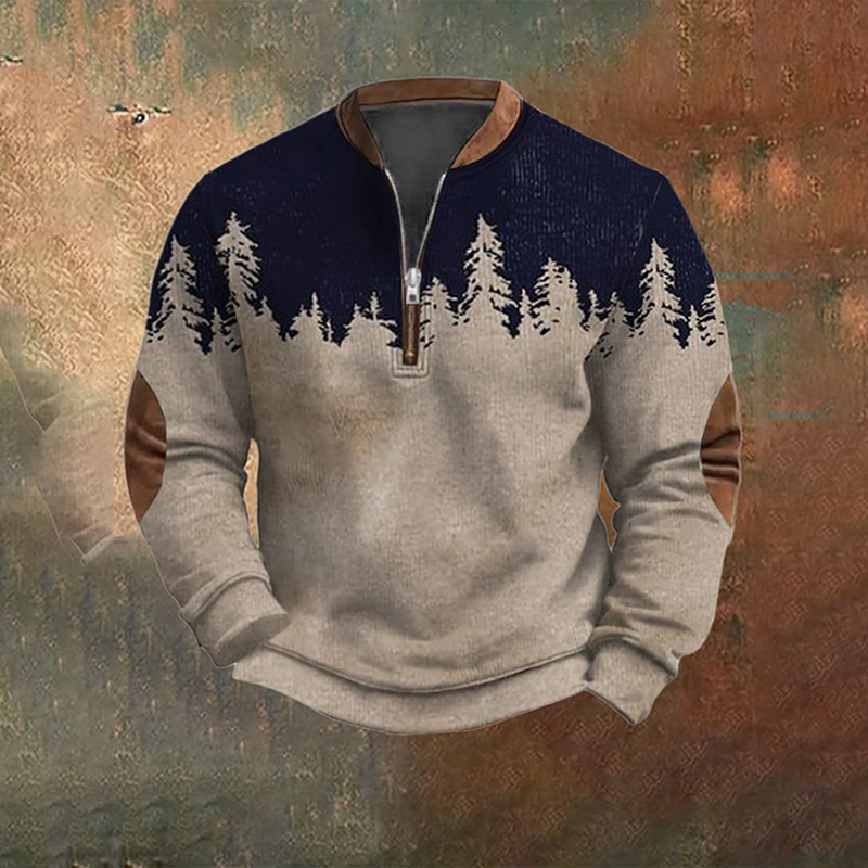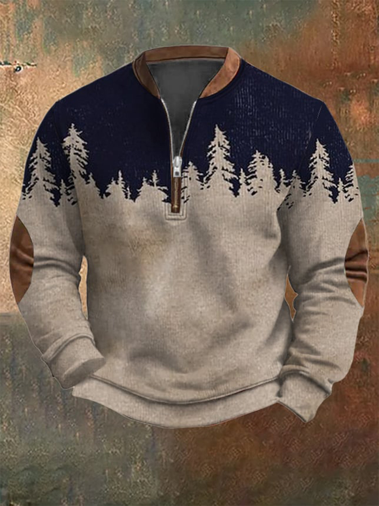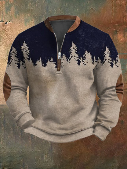 Men's Landscape Print Casual Zipper Sweatshirt