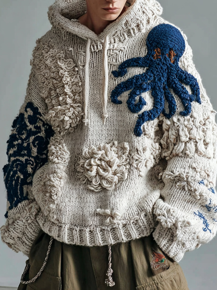 Men's Octopus Art Cozy Knit Hooded Sweater