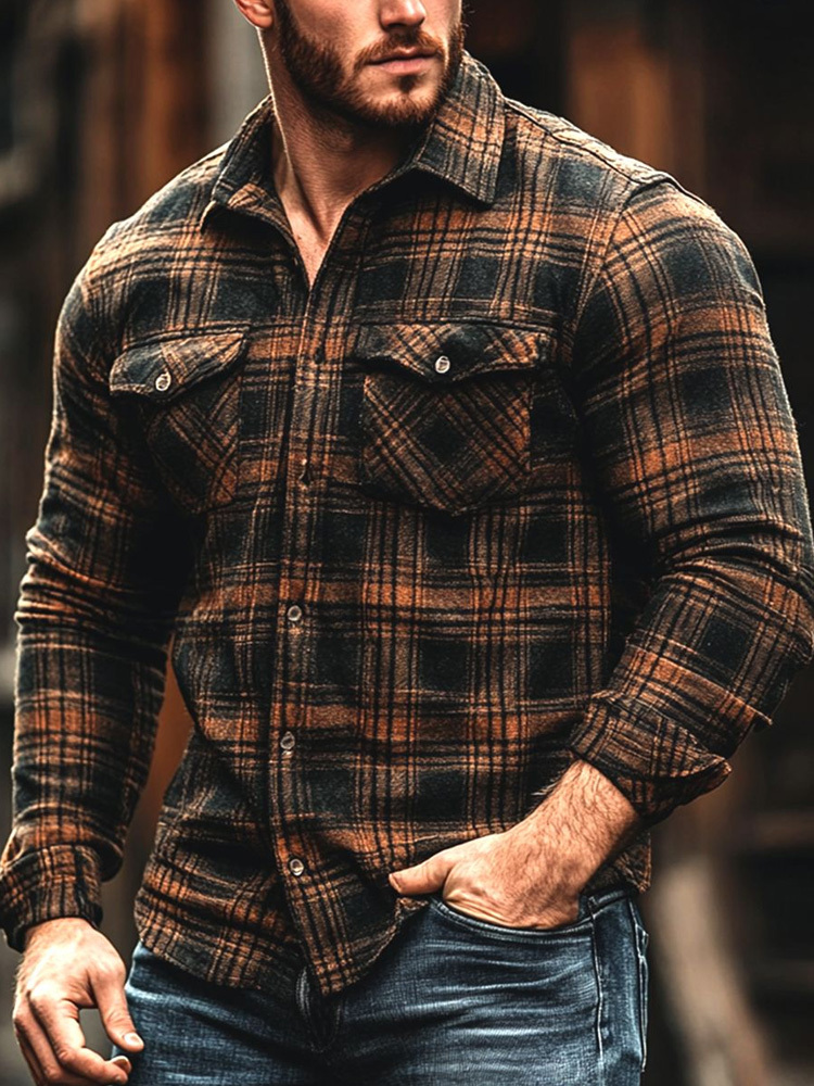 Men's Retro Casual Plaid Thickened Shirt