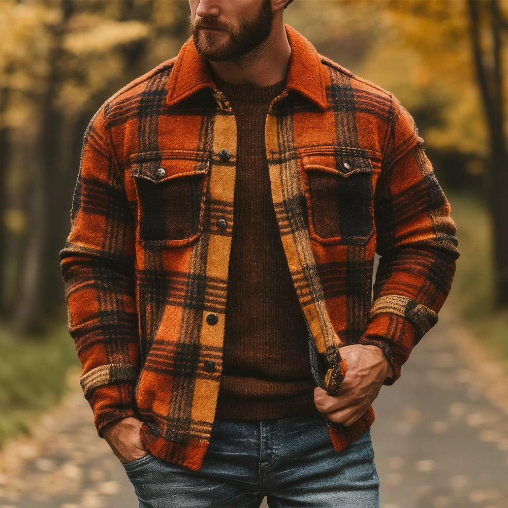 Men's Retro Casual Plaid Thickened Shirt Jacket