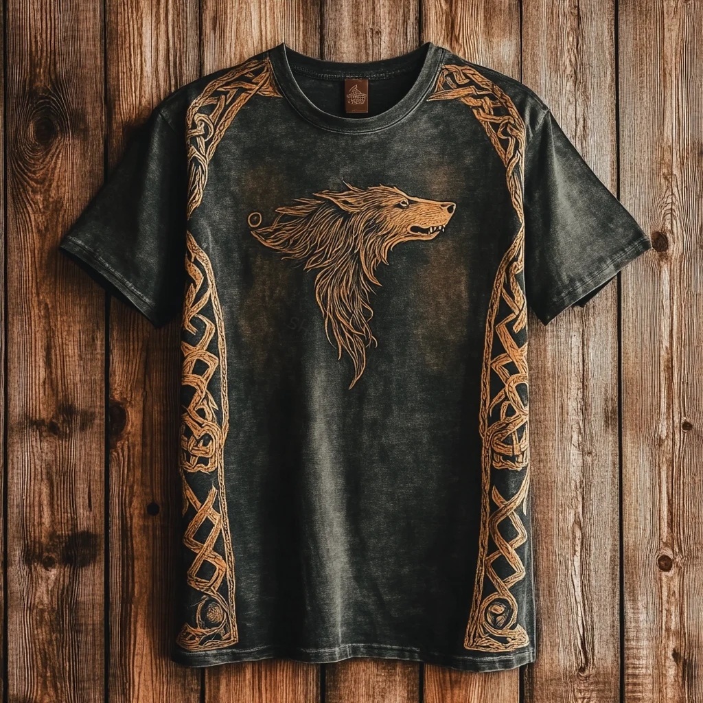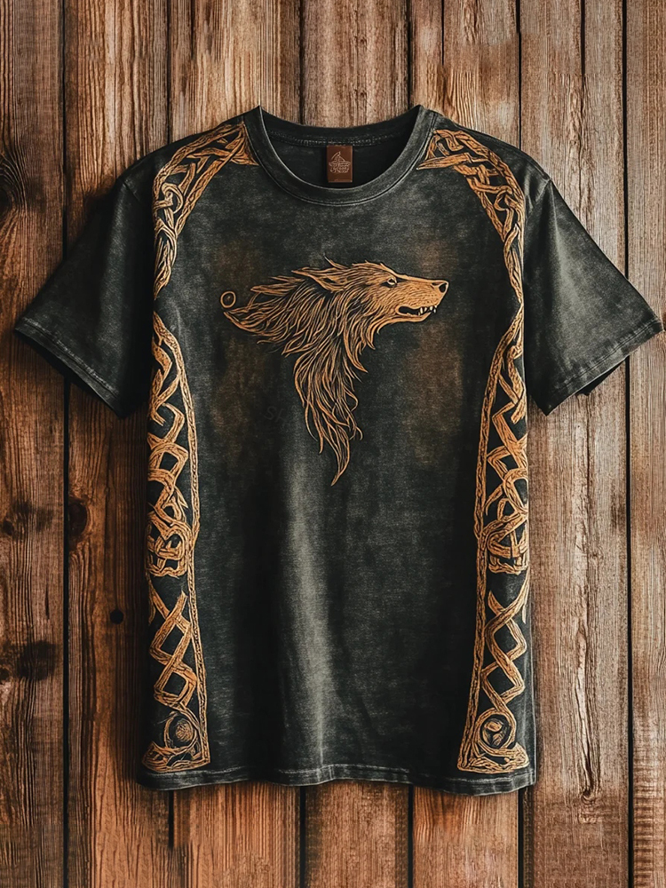 Men's Retro Celtic Wolf And Celtic Knot Print T-shirt