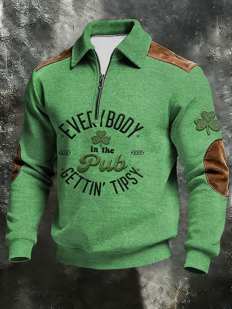 Men's Retro Color Block Print Zip-up Hoodie