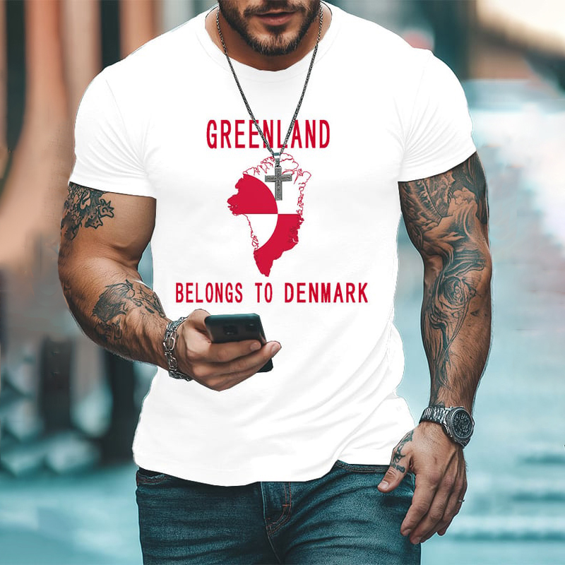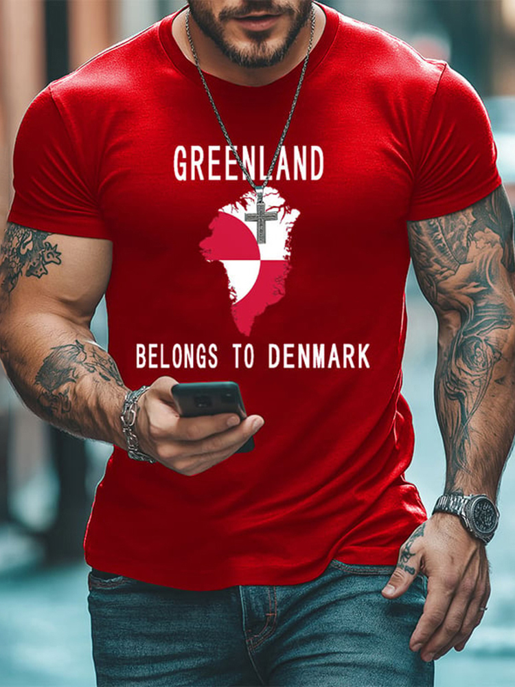 Men's Retro Greenland Belongs To Denmark Printed Casual Crew Neck T-shirt