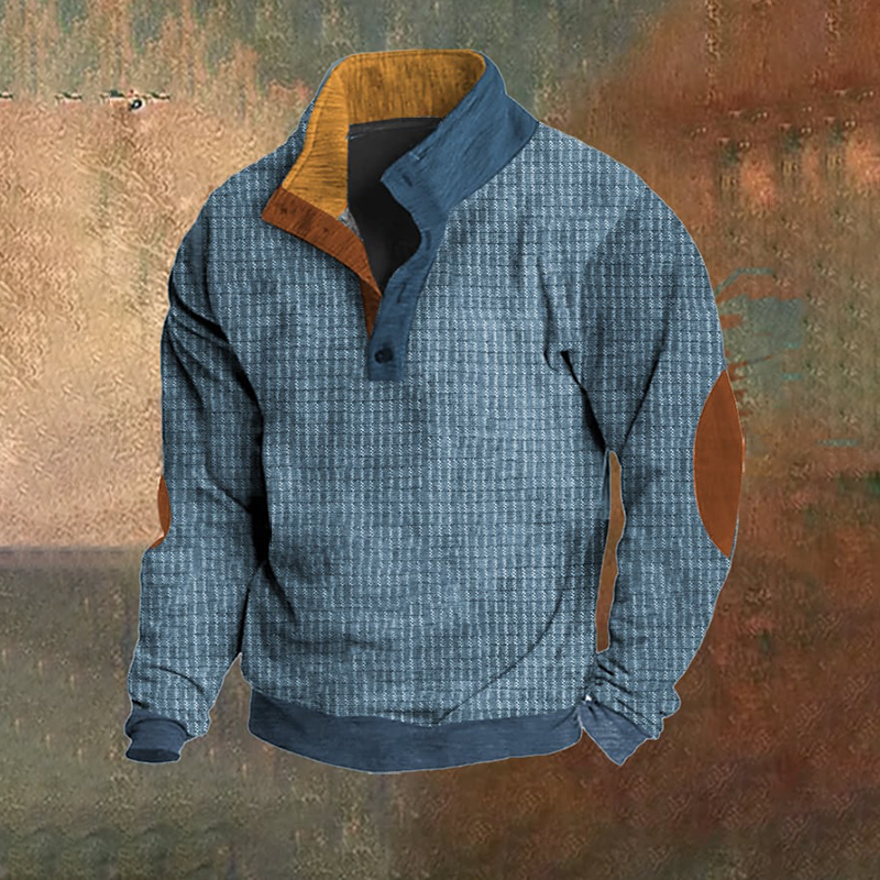 Men's Retro Textured Print Casual Colorblock Stand Collar Sweatshirt