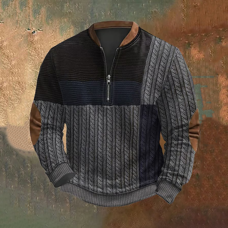 Men's Retro Western Textured Print Zipper Neck Knit Sweatshirt
