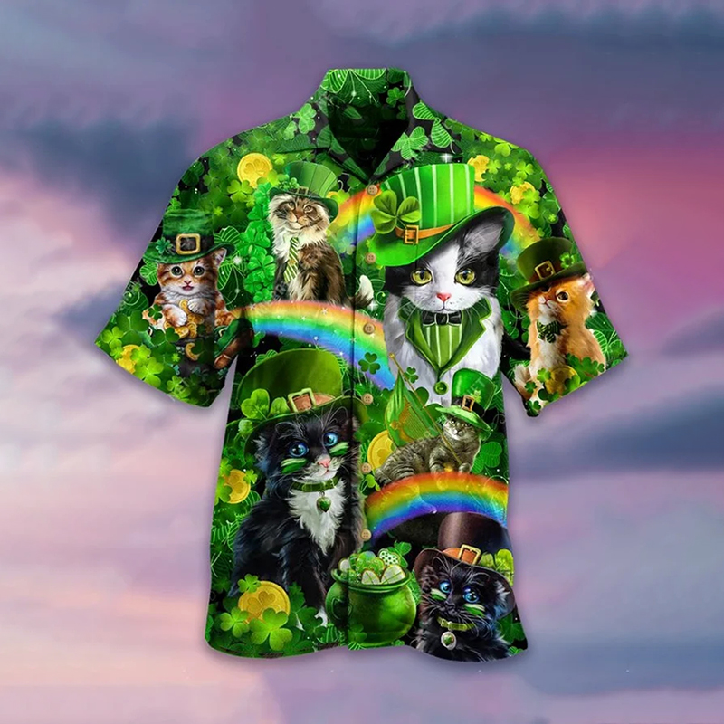 Men's Saint Patrick's Day Cats Shamrocks Hawaiian Shirt
