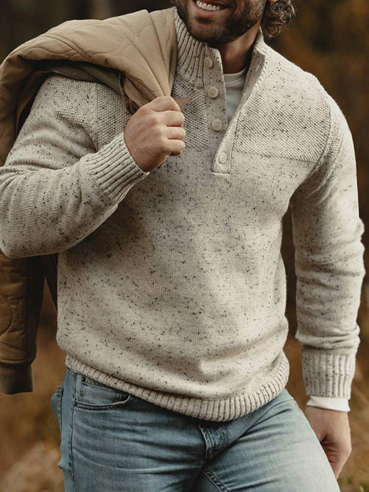 Men's Scotland Wool Knit Vintage Button Turtleneck Sweater