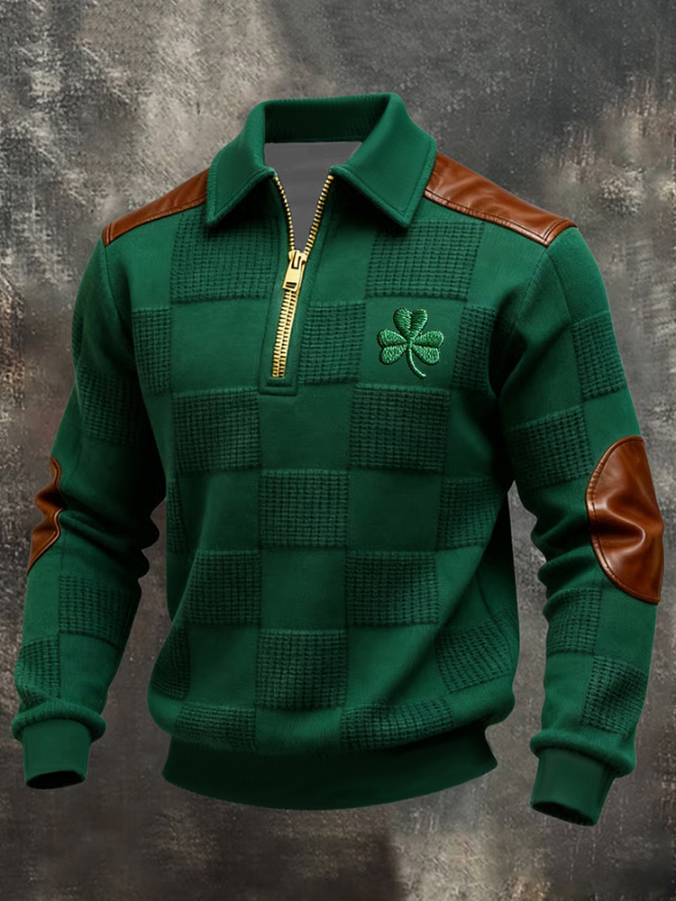 Men's St. Patrick's Day Printed Color-block Zip-up Hoodie