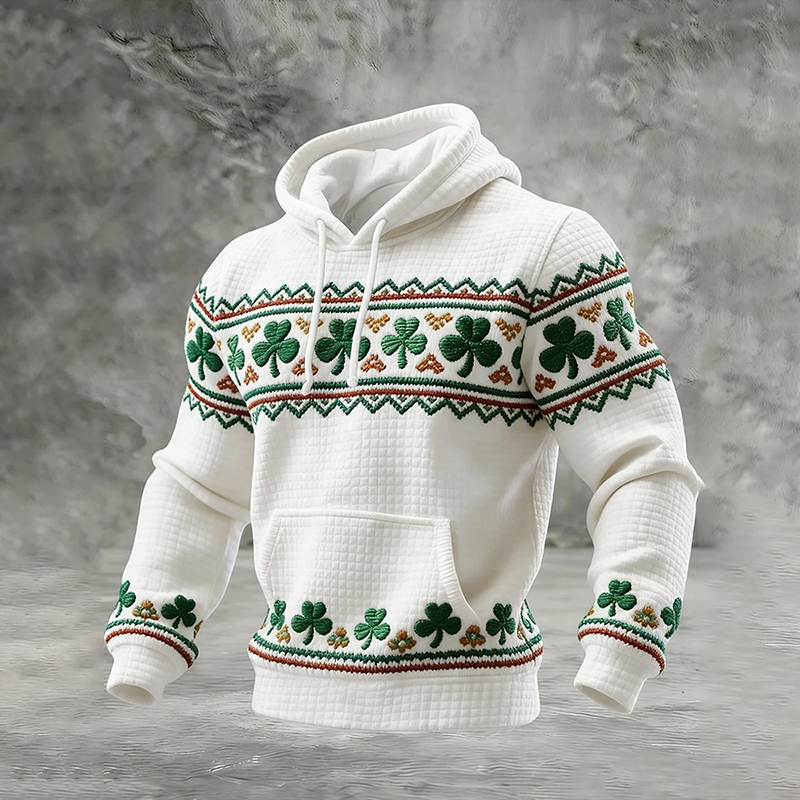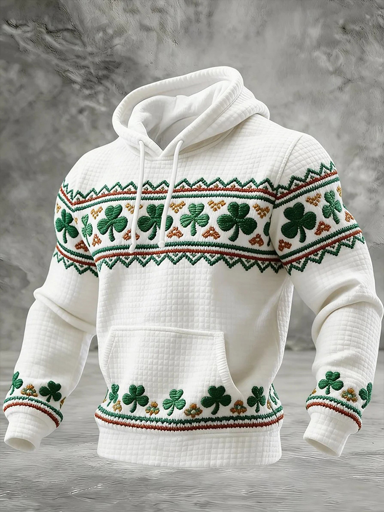 Men's St. Patrick's Day Shamrock Print Casual Waffle Hoodie