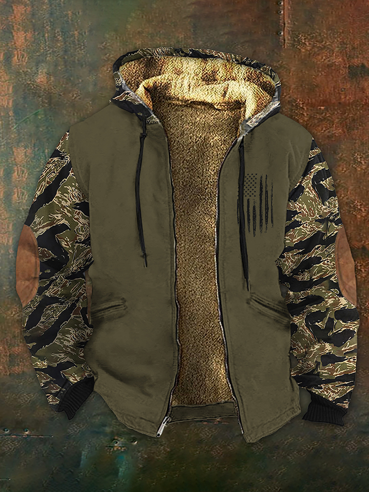 Men's Vintage Contrast Camouflage Flag Outdoor Cardigan Sweatshirt