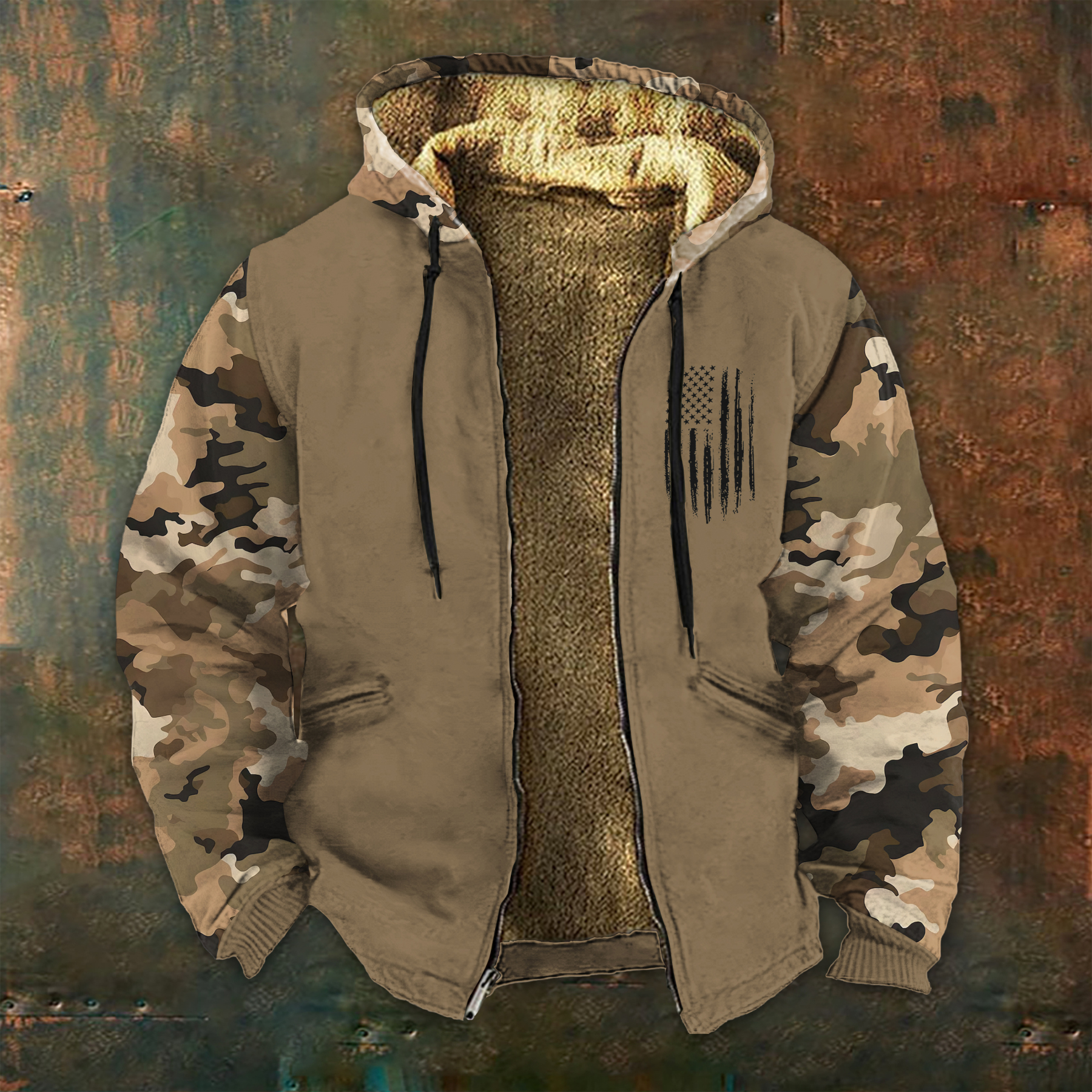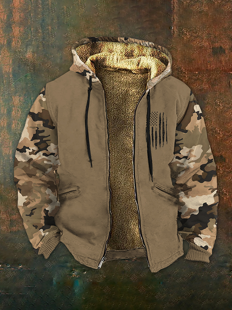 Men's Vintage Contrast Camouflage Flag Outdoor Cardigan Sweatshirt