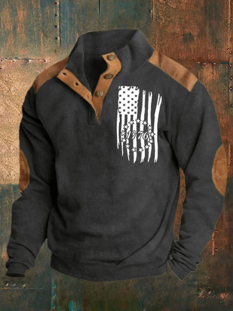 Men's Vintage Flag 1776 Print Casual Button-Down Sweatshirt