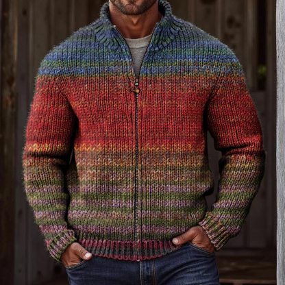 Men's Vintage Gradient Knitted Jacquard Zip Cozy Sweater