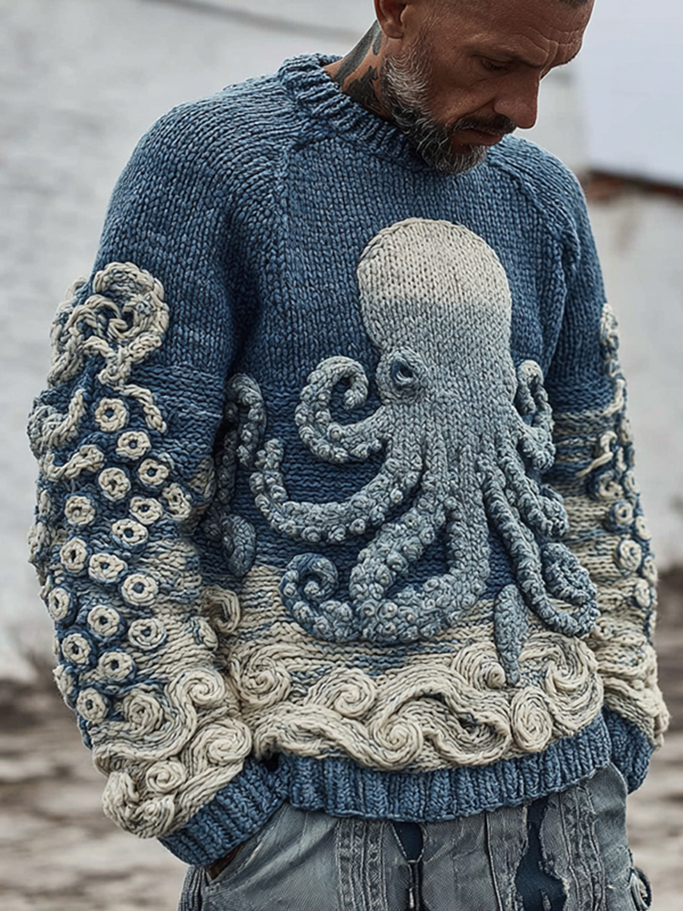 Men's Vintage Japanese Octopus Art Cozy Knit Sweater