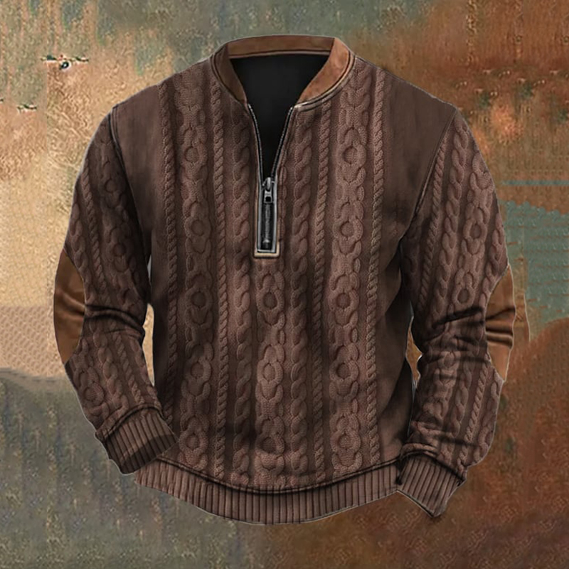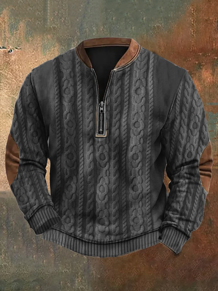 Men's Vintage Knit Print Zip-Up Sweatshirt