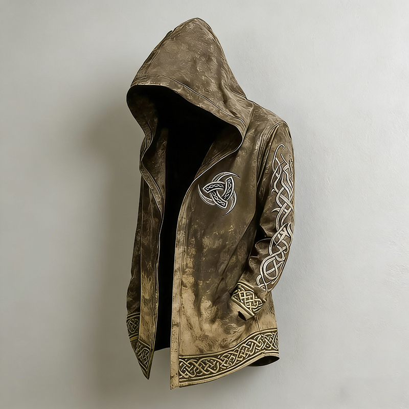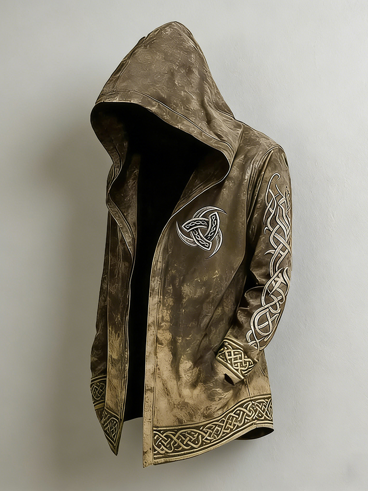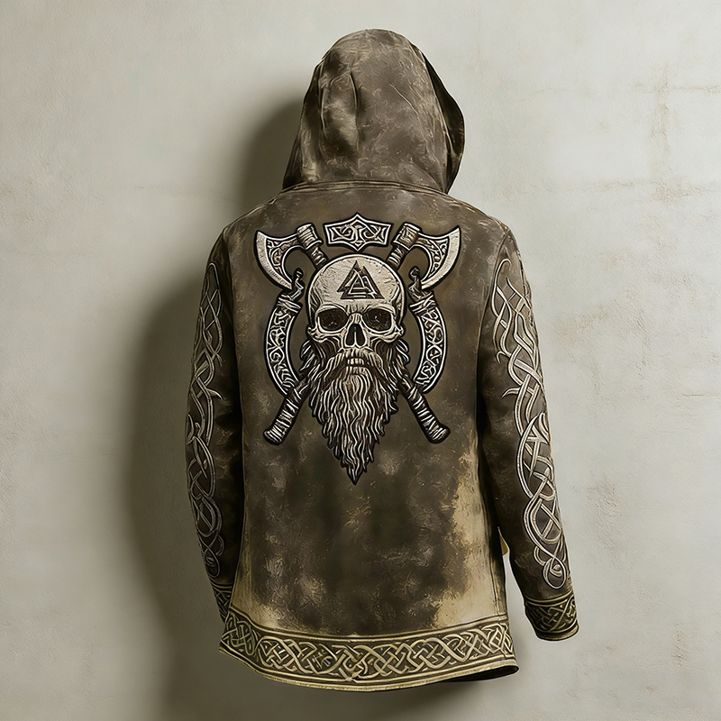 Men's Vintage Viking Celtic Skull Hooded Cardigan