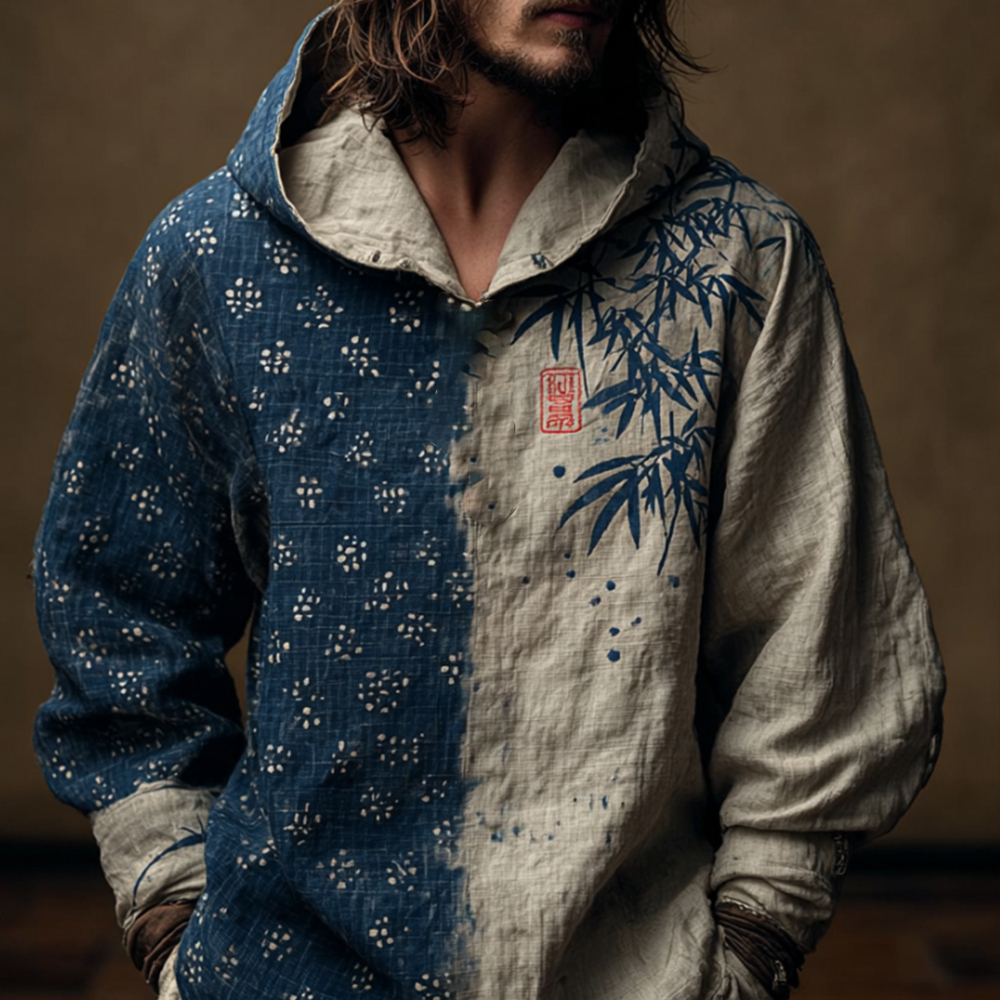 Men Under The Moon Bamboo Grove Japanese Art Color Blocked Hoodie