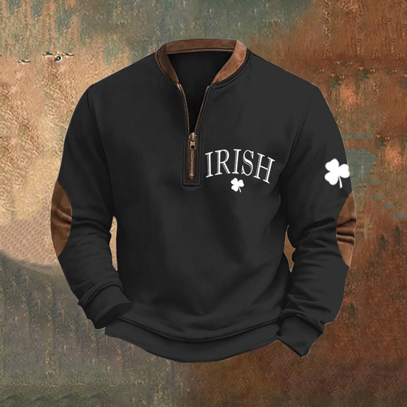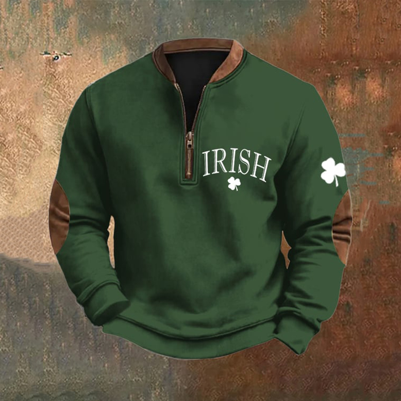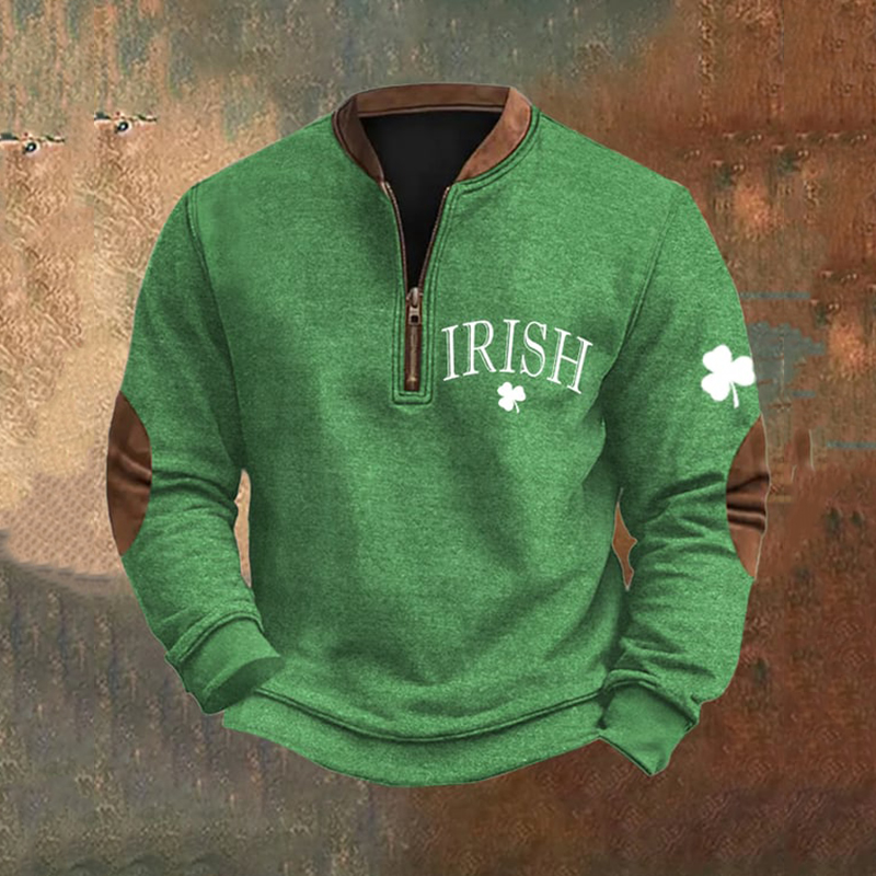 Mens St. Patrick's Day Irish Print Zipper Collar Sweatshirt